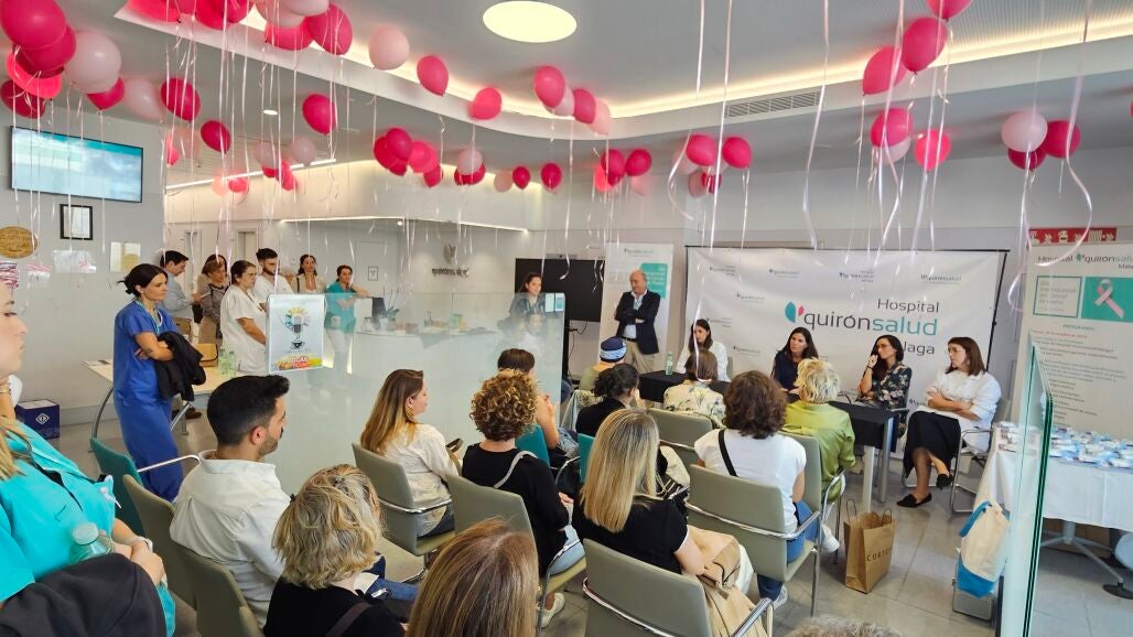 Con motivo del Día Mundial contra el Cáncer de Mama (19 de octubre), el Hospital Quirónsalud Málaga ha celebrado una charla coloquio en el Área Integral de Oncología del Hospital de Día Quirónsalud Málaga el viernes 18 de octubre para conmemorar esta efeméride. Las pacientes y demás interesados asistieron a este encuentro con profesionales sanitarios relacionados con esta enfermedad, donde los doctores Jorge Contreras, jefe del Servicio Integral de Oncología; África Fernández, especialista en Oncología Radioterápica; Carmen Cañabate, especialista en Oncología Médica; Laura López, especialista en Ginecología y responsable de la Unidad de Mama; y Carmen Barceló, psicooncóloga de Quirónsalud Málaga respondieron a las dudas frecuentes que surgen antes, durante y tras esta enfermedad.