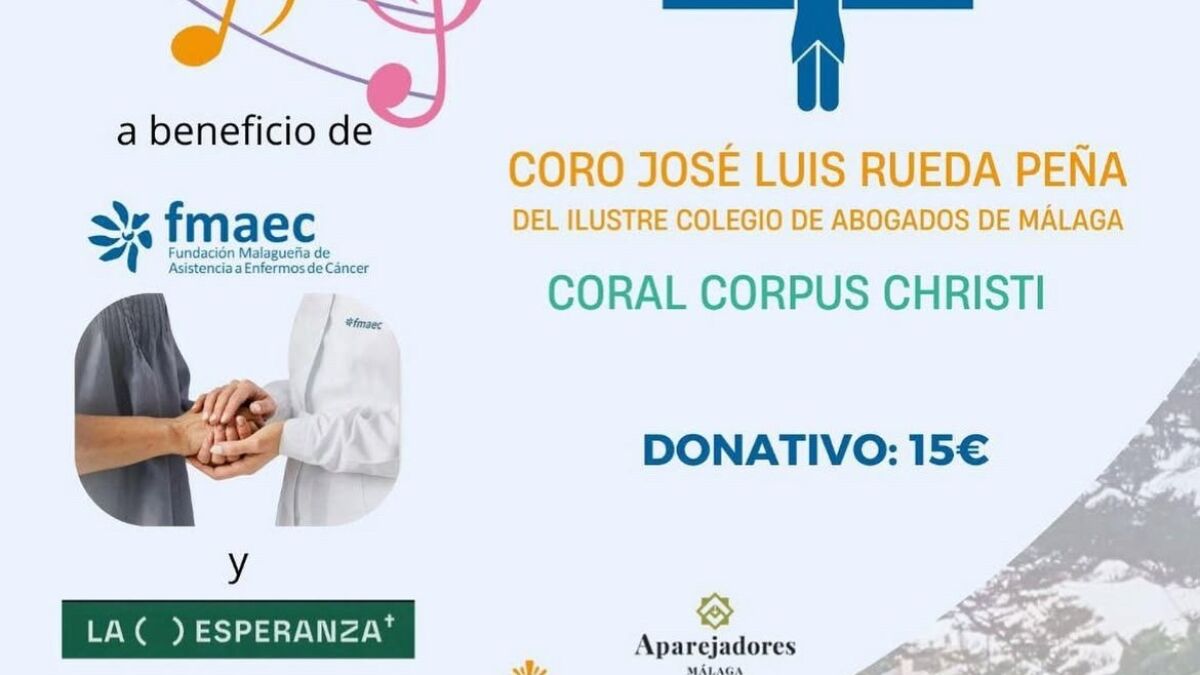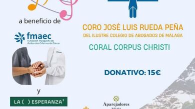 El Colegio de Aparejadores de Málaga, en el Paseo del Limonar, 41, acogerá el próximo viernes 26 de septiembre a las 20.00 horas un concierto solidario a favor de La Casa de la Esperanza y de la Fundación Malagueña de Asistencia a Enfermos de Cáncer (FMAEC). La Casa de la Esperanza, ubicada en las dependencias parroquiales de Nuestra Señora de las Angustias, en la barriada de El Palo, abrió sus puertas el pasado 26 de julio con el objetivo de ofrecer atención a personas en situación de calle. El concierto correrá a cargo del Coro José Luis Rueda Peña del Ilustre Colegio de Abogados de Málaga y la Coral Corpus Christi. Las personas que quieran colaborar con un donativo de 15€ puede adquirir sus entradas en el siguiente enlace. También se ha dispuesto la siguiente fila cero: ES13 2100 2388 51020009 4010.