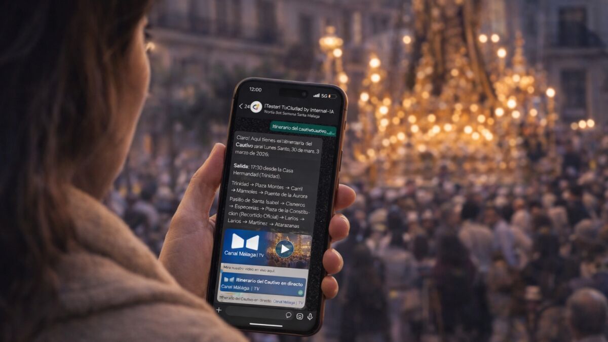 Internalia Group, a través de su división Internal·IA, lanza una nueva edición de su asistente conversacional para seguir la Semana Santa de Málaga en tiempo real desde WhatsApp. El asistente, basado en inteligencia artificial, permite consultar de forma sencilla información como itinerarios, horarios, localización de tronos o agenda diaria, ofreciendo respuestas inmediatas adaptadas al lenguaje natural del usuario, tanto por voz como por texto, y multiidioma.