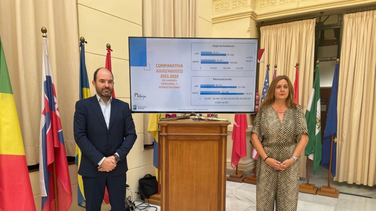 De acuerdo con la Encuesta de Ocupación Hotelera publicada por el Instituto Nacional de Estadística (INE), los meses de julio y agosto de 2021 han sido los primeros que se acercan a los niveles de 2019, previos a la pandemia de la COVID-19, e incluso duplican las cifras de viajeros con respecto los mismos meses del año 2020. Así lo ha anunciado esta mañana la concejala de concejala de Turismo, Promoción de la Ciudad y Captación de Inversiones, Rosa Sánchez, quien ha señalado que los datos de ocupación hotelera de julio y agosto en la ciudad de Málaga han arrojado más de 204.000 viajeros y más de 510.000 pernoctaciones en estos dos mes de verano.