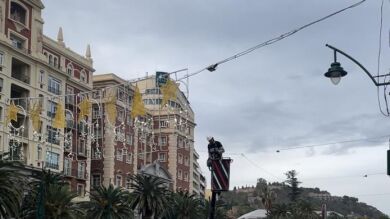 Los operarios ya han comenzado a instalar las luces de Navidad de la capital malagueña. Este lunes han comenzado los trabajos en la Alameda Principal y la plaza de la Marina. A falta de dos meses para Navidad, la empresa cordobesa Ximenez ha colocado las primeras hileras de luces.