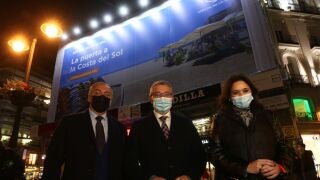 Por primera vez, las tres lonas gigantes de alto impacto, que son las más vistas de España ubicadas en la plaza más popular de la capital de España, están ocupadas por una única marca. "Se trata de espacios habitualmente reservados para las marcas más prestigiosas del mundo y, en esta ocasión, la marca más valiosa en ámbito turístico toma ese lugar", dijo el presidente de Turismo Costa del Sol, Francisco Salado. Se trata de imágenes de los segmentos turísticos de golf, interior, gastronomía y sol y playa, claves para nuestro destino.