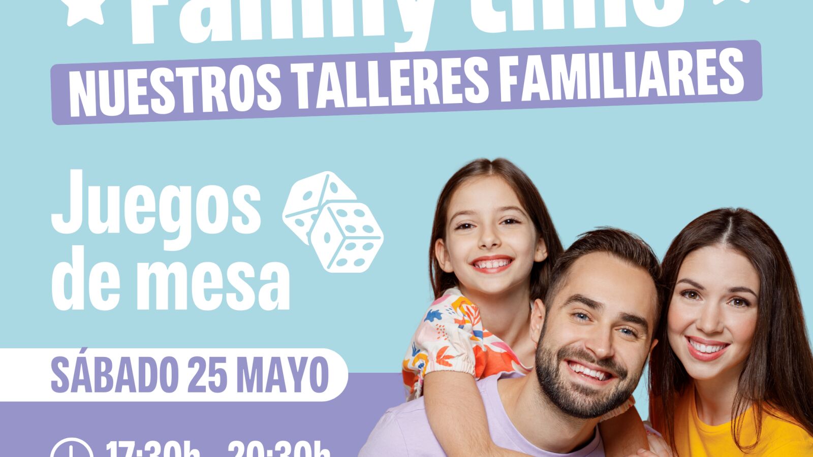 Este evento, diseñado para disfrutar en familia, contará con entretenidas sesiones de juegos de mesa en tres pases de una hora cada uno, desde las 17:30h hasta las 20:30h.