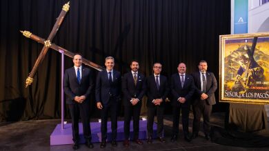La Cofradía del Rocío ha presentado la 'Cruz del Mundo' y el cartel conmemorativo del 50 aniversario de la talla de Nuestro Padre Jesús Nazareno de los Pasos en el Monte Calvario, esculpida en 1977 por Antonio Eslava Rubio y Rafael Quiles. La nueva pieza patrimonial custodia en su interior un fragmento de la roca del Gólgota de Jerusalén, cedido por la Custodia Franciscana de Tierra Santa.