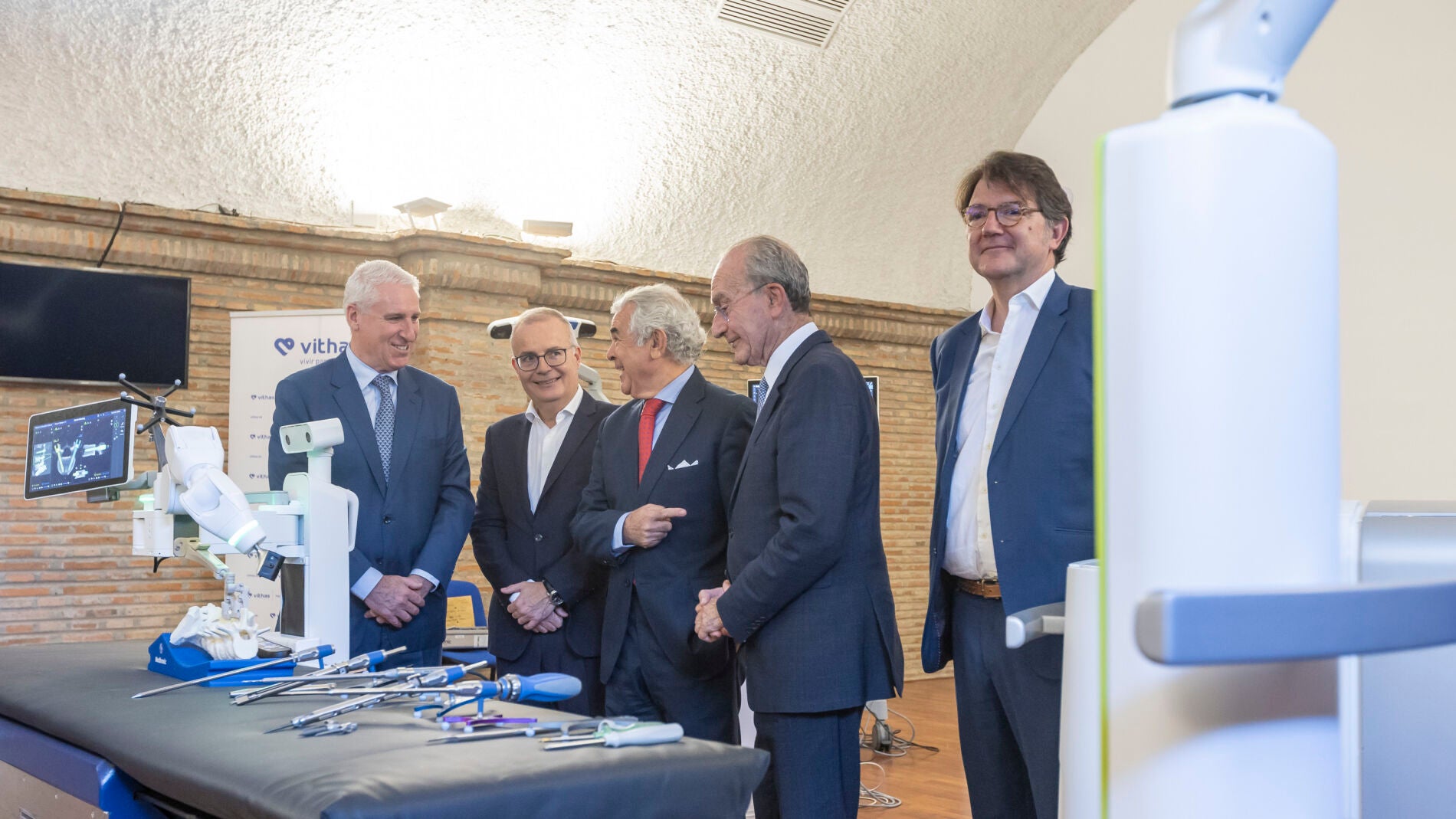 El Salón de Actos Dr. Gálvez Ginachero del Colegio Oficial de Médicos de Málaga ha acogido esta mañana la presentación tanto de la nueva Unidad de Cirugía Robótica del Hospital Vithas Málaga, como de su “buque insignia”: el innovador sistema robótico Mazor, el cual optimiza la precisión de la cirugía de columna permitiendo colocar con mayor precisión instrumentos quirúrgicos o implantes durante intervenciones mínimamente invasivas. Se trata de la primera unidad de este tipo presente en Andalucía, y de la únicamente existen dos más en España ubicadas en Madrid y Barcelona.