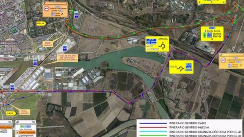 Para asegurar la fluidez de tráfico se han habilitado itinerarios debidamente señalizados. En sentido Huelva, el tráfico procedente de la A-4 se desvía en la salida 549 hacia la carretera de la esclusa (SE-31), continuando por la misma hasta la rotonda de la calle José Delgado Brackenbury, desde donde se puede acceder a la SE-30.