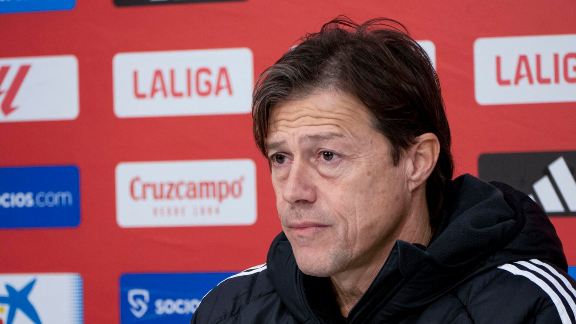 El técnico argentino, logicamente, quería ganar, pero valora positivamente el empate y admite que "esto va a ser hasta el último partido, como en años anteriores. Hay que estar tranquilos, este punto vale oro. Nosotros hemos empatado poco. Hago un balance positivo. Tenemos que ir construyendo partido a partido y sumar. Le doy importancia porque veníamos de perder varios partidos y de no marcar, además que el partido se había puesto 2-0. Valoro la actitud, la entrega, el compromiso, la lucha y la interpretación de cada uno de los jugadores. Nos llevamos un punto que estuvo bien porque el partido fue parejo".