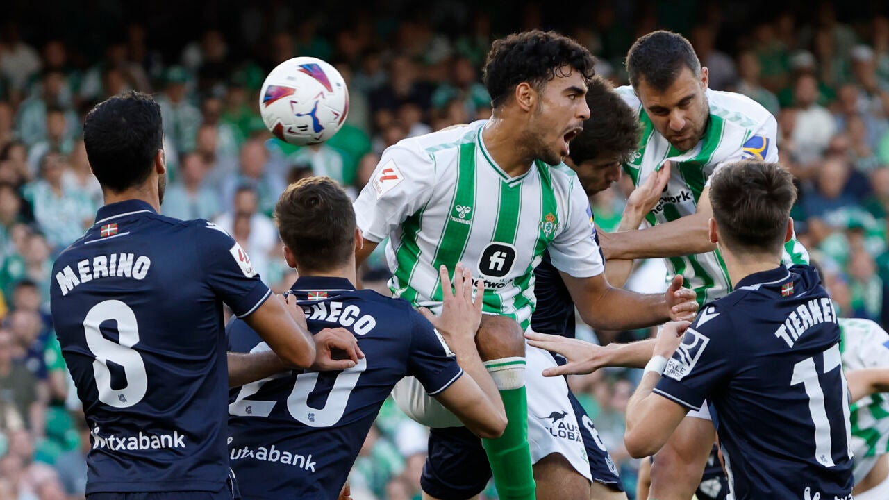 La Real, que tenía enfrente a su 'bestia negra' de los últimos años, porque no ganaba al conjunto verdiblanco desde el 18 de octubre del 2020 (0-3 en el Benito Villamarín), también acumulaba bajas, como Martín Zubimendi, Igor Zubeldia y Javi Galán, que se unían a los lesionados Aihen Muñoz y Carlos Fernández, pero además de última hora, pese a que estaba anunciado en el 'once', el central Robin Le Normand salió del equipo y en su sitoó fue titular Jon Pacheco.