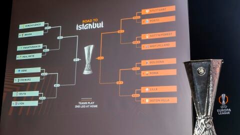 El conjunto bético jugará ante el equipo adiestrado por Rafa Benítez, que es ahora mismo quinto en la liga griega. El choque de ida se celebrará el jueves 12 de marzo en el estadio Olímpico de Atenas-Spiros Louis a partir de las 18.45 horas. Y el de vuelta, una semana después, el día 19 de marzo en La Cartuja, a las 21.00 horas. También se han sorteado todos los cruces hasta la final de Estambul y en el Real Betis han terminado relativamente contentos con el resultado, porque ha quedado encuadrado en el lado 'asequible' del sorteo: si el equipo verdiblanco pasa a cuartos, jugará ante Ferencvaros o Sporting de Braga; y en el caso de que alcanzara las semifinales, el rival será el ganador del Genk-Friburgo o del Celta-Lyon.