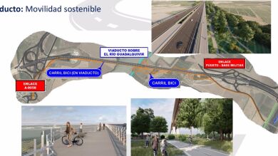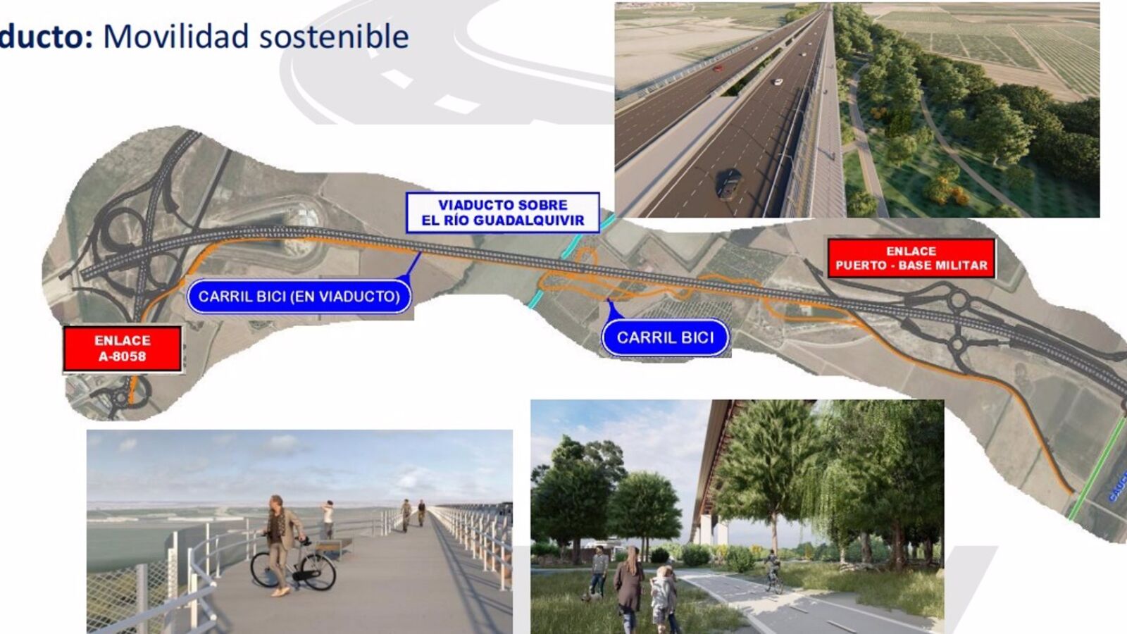 Las obras del puente podrían empezar el año que viene, en el tramo de Espartinas-Valencina, Valencina-Salteras. Un puente de casi 4 km de largo, 70,8 metros de gálibo, 4 carriles por sentido y 7km de carril bici y se crearán 72.000 metros cuadrados de nueva superficie forestal.