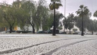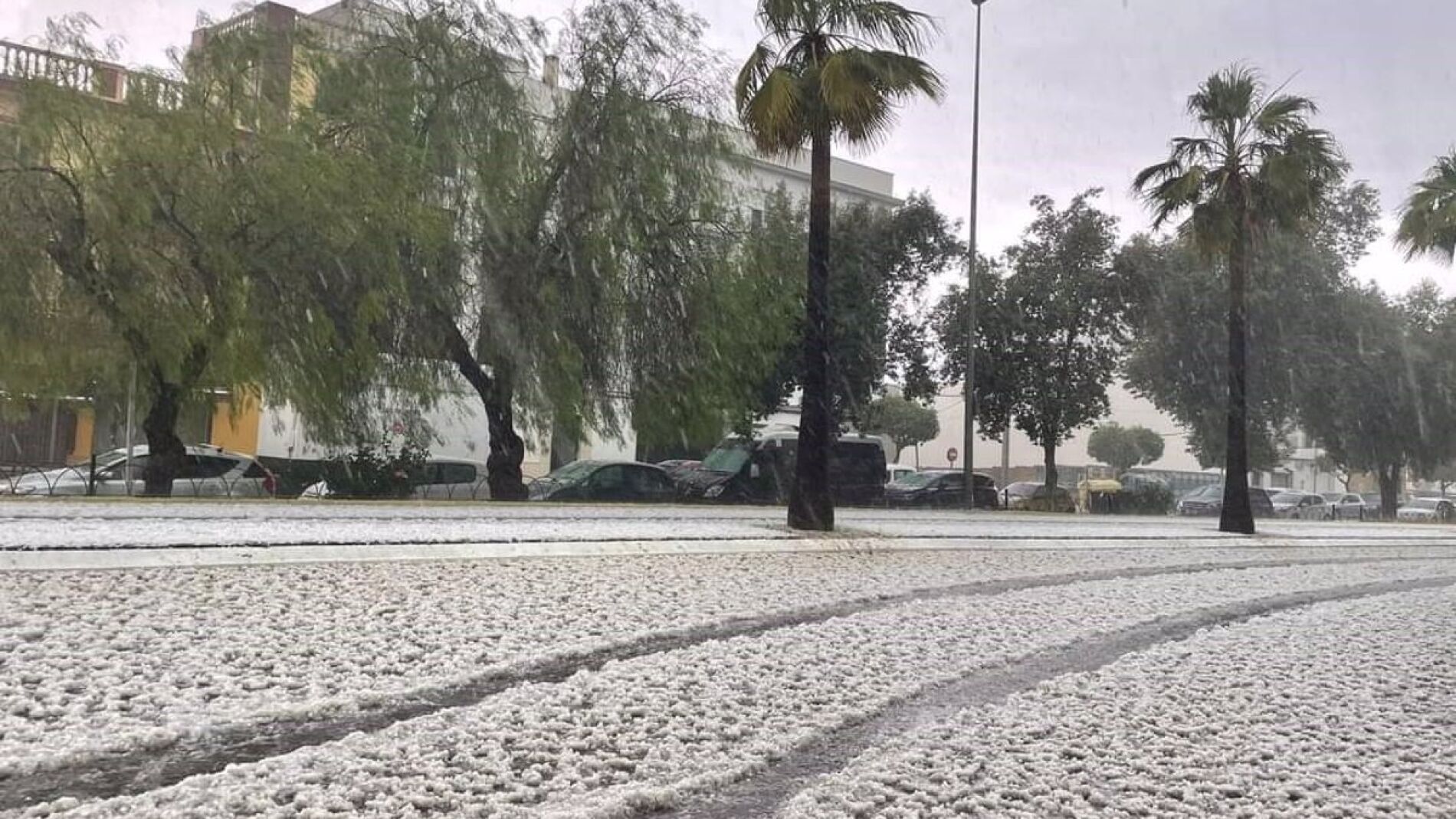 Varias calles del municipio, además, fueron cortadas por la acumulación de granizo, y hasta la autopista AP-4 estuvo cortada a su paso por la localidad ante la acumulación de granizo en la calzada.
