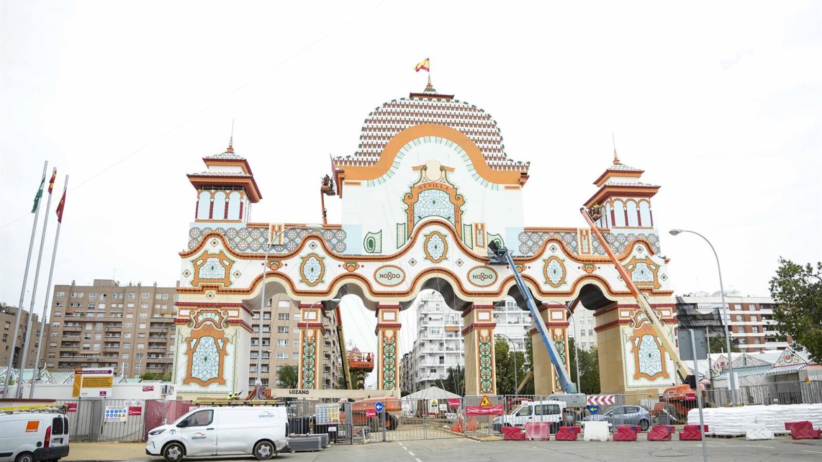 La estructura que da la bienvenida a sevillanos y visitantes estos días en el albero de Los Remedios consta de unos 30.537 metros de tubos y 3.777 metros cuadrados de panelado. En cuanto a dimensiones tiene 40 metros ancho, 40 de alto y 5,70 de profundidad. Con más de 6.000 piezas de carpintería.