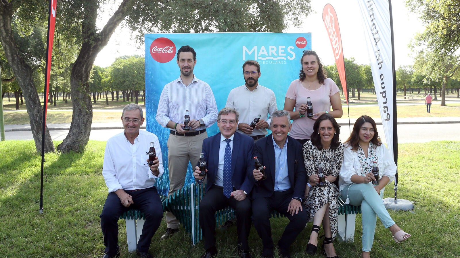Mares Circulares, el proyecto más ambicioso de Coca-Cola para la limpieza de costas y fondos marinos, la sensibilización de la ciudadanía y el desarrollo de la economía circular en España y Portugal, entrega en Sevilla uno de los 18 bancos que Mares Circulares, junto a Asociación Vertidos Cero, está fabricando con plástico 100% reciclado, del cual, al menos un 30% procede de la basura marina recogida del fondo del mar por los más de 500 pescadores que participan en el proyecto. Un ejemplo de economía circular gracias a la apuesta de Mares Circulares por la innovación científica.