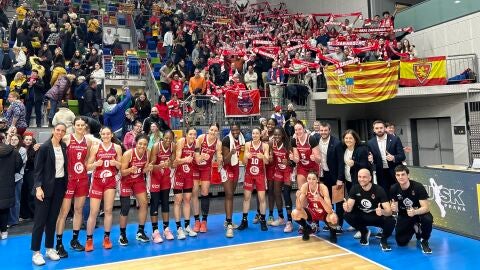 No estuvieron solas ni mucho menos porque el pabellón estaba teñido del rojo de Casademont Zaragoza, con la afición imponiéndose sobre la local, poniendo la guinda a una fiesta que se trasladó del parqué hasta el avión de vuelta, donde plantilla, cuerpo técnico y seguidores compartieron viaje.