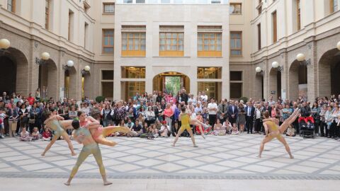 En el Palacio de La Aljafería,más de 5.000 personas han participado en las jornadas de puertas abiertas. Por ejemplo, este lunes han disfrutado del teatro, música de tradición oral sefardí o un espectáculo de trapecio. Los más pequeños han participado en un taller de cómic y otro de arcilla para crear una estrella mudéjar. Además, continúa la exposición de fotografías inéditas sobre los 25 años de la restauración del palacio.