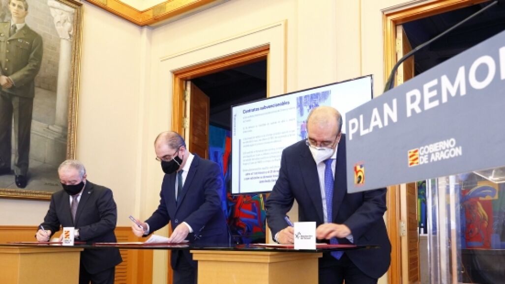 El Gobierno aragonés subvencionará esos contratos al 60% con un presupuesto global inicial de 2,5 millones, adaptable a los contratos que finalmente se firmen. El otro 40% lo aportarán los ayuntamientos, con apoyo de las diputaciones. El presidente Javier Lambán y los presidentes de las diputaciones de Huesca y Teruel han firmado un protocolo que permite agilizar la contratación incluso antes de la publicación de la orden del plan.