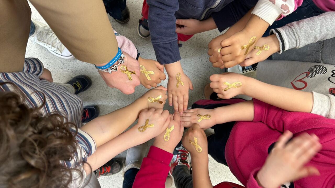 Más de 30 colegios en Aragón han realizado actividades para mostrar su apoyo a los niños que padecen cáncer formando un gran lazo dorado en el patio de recreo. Actividad a la que se han sumado cientos de personas bailando la jota de Alcañiz desde las principales plazas de las tres capitales aragonesas (la plaza López Allué de Huesca, la del Pilar en Zaragoza y la Escalinata del Óvalo en Teruel).