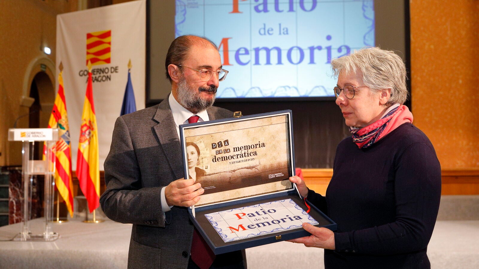Este año, el Gobierno autonómico lo ha conmemorado con un emotivo homenaje a los 236 alcaldes aragoneses que durante la guerra civil y el franquismo fueronasesinados, encarcelados, expoliados u obligados a exiliarse o trabajar en campos de concentración nazis. Todos ellos han recibido, a título póstumo, el Bastón Honorífico con el que el Gobierno autonómico reconoce a aquellos ediles que han desempeñado su cargo con extraordinaria ejemplaridad. Dos empleados públicos, nietos de represaliados, han recogido el bastón para colocarlo en un monolito ubicado en el que, a partir de ahora, se denominará el Patio de la Memoria.