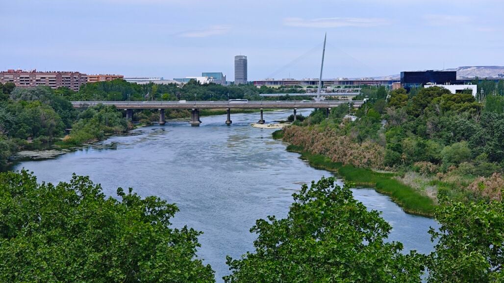 La sequía ha provocado que el cauce del Ebro, a su paso por Zaragoza, se parezca más al propio de julio o agosto que al de un mes de mayo. El nivel del río apenas alcanza los 70 centímetros y el caudal ronda los 32 metros cúbicos por segundo, según los datos de la Confederación Hidrográfica. Esa escasez de agua deja al descubierto algas estancadas, ramas y piedras.