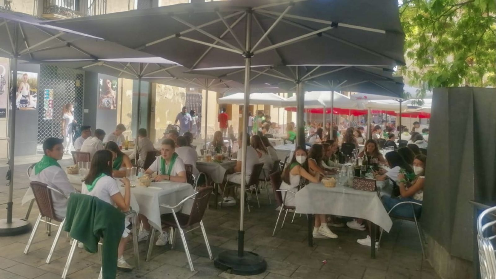 Ambiente que previsiblemente continuará a lo largo de la jornada con vermús, comidas y cenas. Eso sí, el lleno de las terrazas de este año, marcado por la COVID-19, nada tiene que ver con el lleno de las terrazas de otros años y es que las medidas sanitarias obligan al cumplimiento de aforos y de distancias de seguridad. El concejal de Fiestas Ramón Lasaosa, lamentaba que de nuevo la ciudad se haya quedado sin fiestas debido a la pandemia y que los hosteleros vuelvan a quedarse sin una de sus principales fuentes de ingresos.