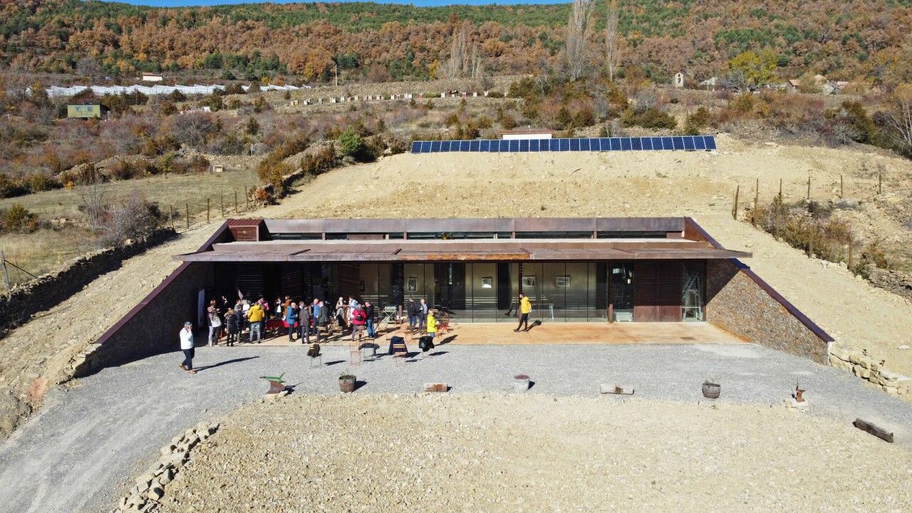 Está enterrada bajo la ladera pirenaica, cuenta con energía 100% renovable gracias a las placas solares, está construida con material de la zona y cuenta con un diseño modernista, totalmente integrado en el paisaje y apostando por la eficiencia y la ecología. Así es la nueva bodega Bal Minuta, y que forma parte de un proyecto de enología que nació hace 10 años en los viveros de Adecuara de Biescas y que ha ido creciendo, de la mano de los enólogos profesionales Pilar Gracia y Ernest Guasch.