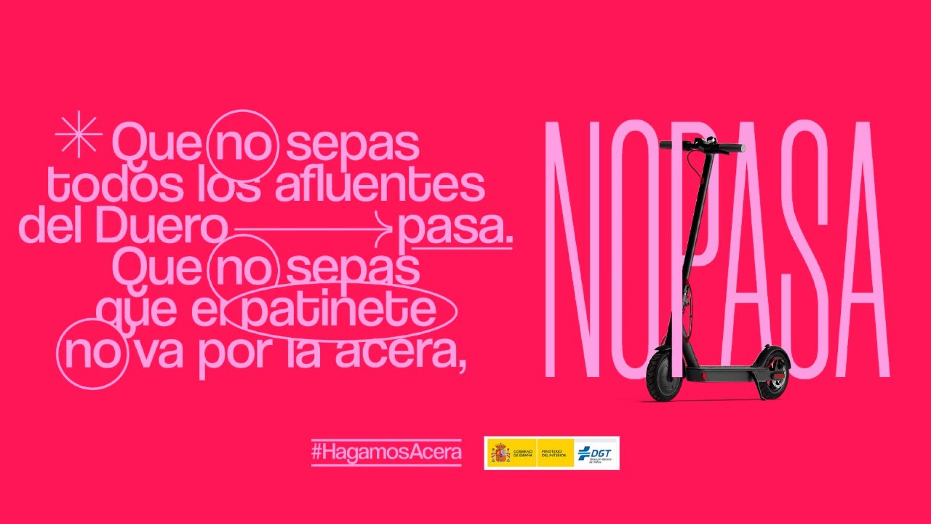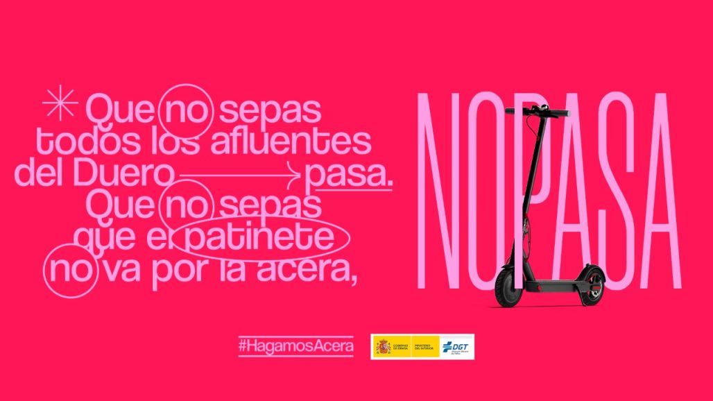 Se trata de reforzar la idea de que el respeto de las normas que garantizan la movilidad segura es básico para avanzar hacia el modelo de ciudades pacificadas en el que todos los usuarios puedan convivir. Por este motivo y con el foco puesto en proteger al usuario más vulnerable, no solo en la calzada, sino también en las aceras se ha desarrollado esta acción. Bajo el slogan “No pasa”, la campaña juega con algunas preguntas de cultura general de las que no pasa nada por no saber la respuesta, para dejar claro después que la bicicleta y el patinete “no pasan” por la acera.