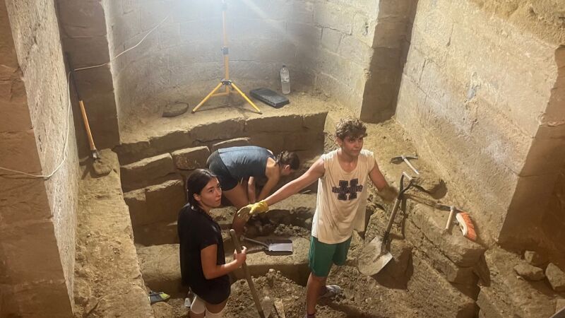 Una treintena de jóvenes de entre 15 y 25 años de Huesca y de otras provincias de España participan en un campo de trabajo arqueológico organizado por la Comarca de la Hoya y la Diócesis de Huesca en la iglesia de San Pedro el Viejo. Entre los hallazgos destaca la identificación de un muro que conserva cuatro fases constructivas superpuestas y que permitirá profundizar en la evolución arquitectónica del edificio, según ha señalado la directora científica de la excavación, Julia Justes.