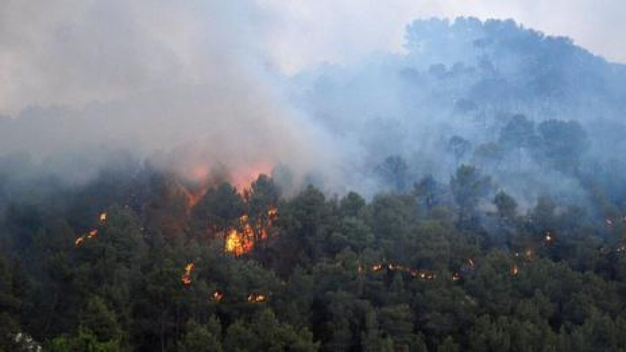 El incendio se desató ayer sobre las dos de la tarde y ha afectado a unas treinta hectáreas de pino carrasco y monte bajo, a tan solo dos kilómetros del casco urbano, lo que obligó a desalojar a una treintena de niños del camping y a los trabajadores del matadero donde se originó el fuego.