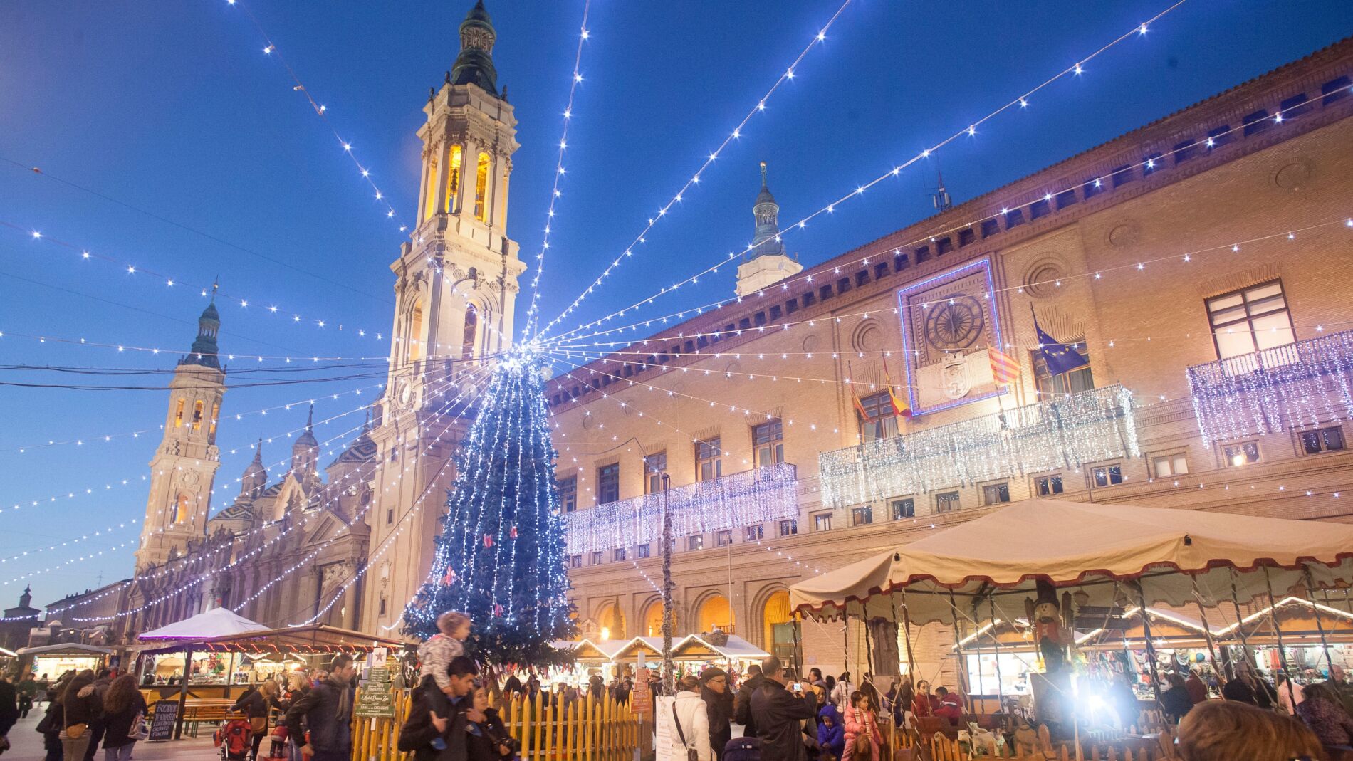 La plaza del Pilar es el epicentro de las actividades navideñas con las casetas de la muestra Navideña, la pista de patinaje, el árbol de los deseos y el Belén, por lo que contará con una iluminación especial.