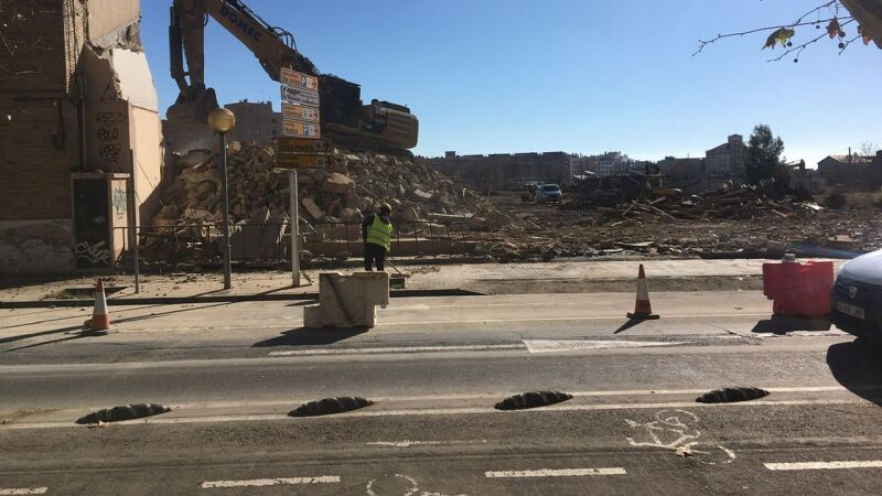 Con motivo de estos trabajos de demolición ha quedado cortado el carril más próximo a las obras en la avenida Martínez de Velascco, quedando sólo un carril unidireccional para la circulación de vehículos.
