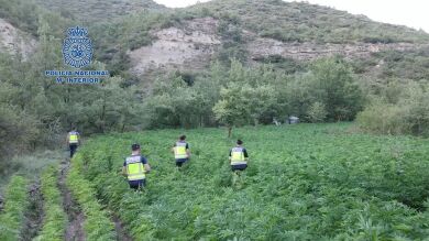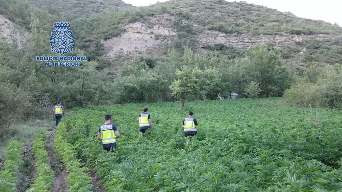 La Policía Nacional, en el marco de la operación Tridente, ha desarticulado una organización criminal dedicada al tráfico de drogas en la provincia de Huesca. Los agentes han desmantelado tres macroplantaciones de marihuana en Roda de Isábena. Se han intervenido 8.200 plantas de marihuana y 10 kilos de speed. Además, la operación policial se ha saldado con 12 detenidos, de los que cinco están ya en prisión. Una operación que culmina las investigaciones que los agentes han llegado a cabo en los últimos dos años,