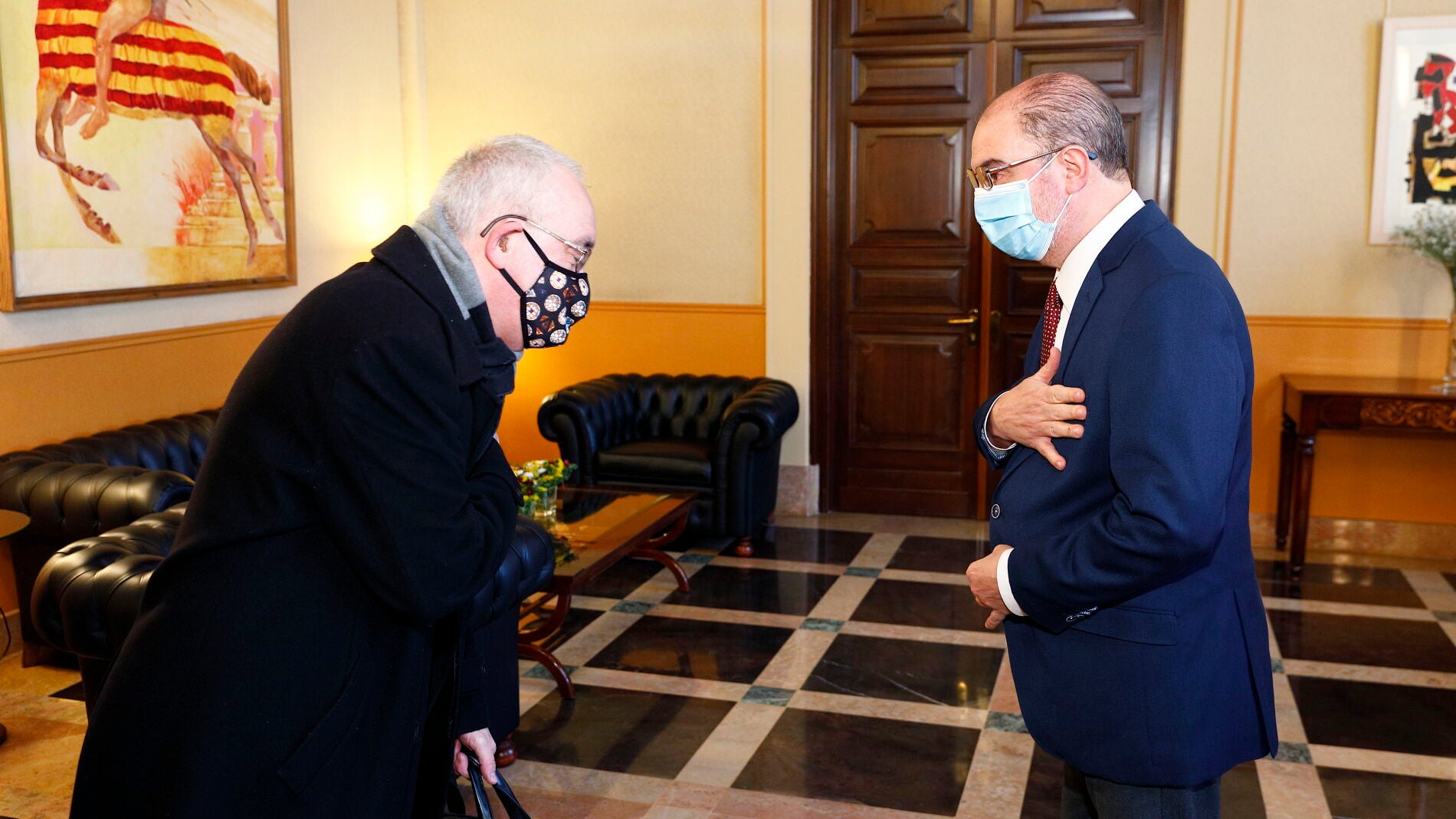 Este viernes el obispo de la diócesis altoaragonesa, Ángel Pérez, ha sido recibido por el presidente aragonés, Javier Lambán, en el Pignatelli, institución que ha acompañado a la diócesis en el proceso. Pérez se muestra optimista con el final de esta batalla que trasciende lo patrimonial y que ha sido posible gracias al trabajo conjunto con el Ejecutivo. Confía en el “soñado” regreso de las piezas y explica que el museo de la ciudad del Vero está perfectamente preparado para conservarlas y mostrarlas.