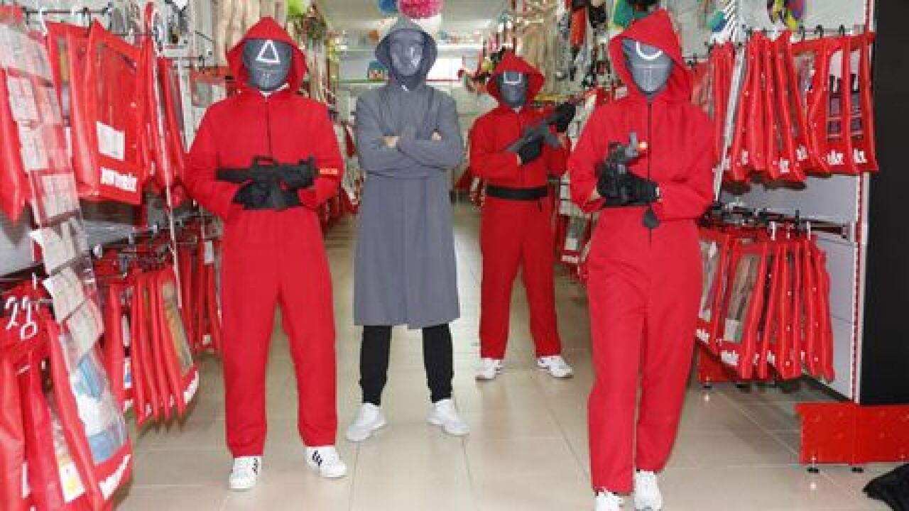 No todas las tiendas de disfraces pueden vender el disfraz de El Juego del Calamar por una cuestión de derechos que deben negociar con Netflix para explotar la imagen dela serie. Dado el parecido del uniforme que se ha hecho popular por la serie coreana con el de los atracadores de La Casa de Papel, quien más quien menos tienen solucionado el disfraz.