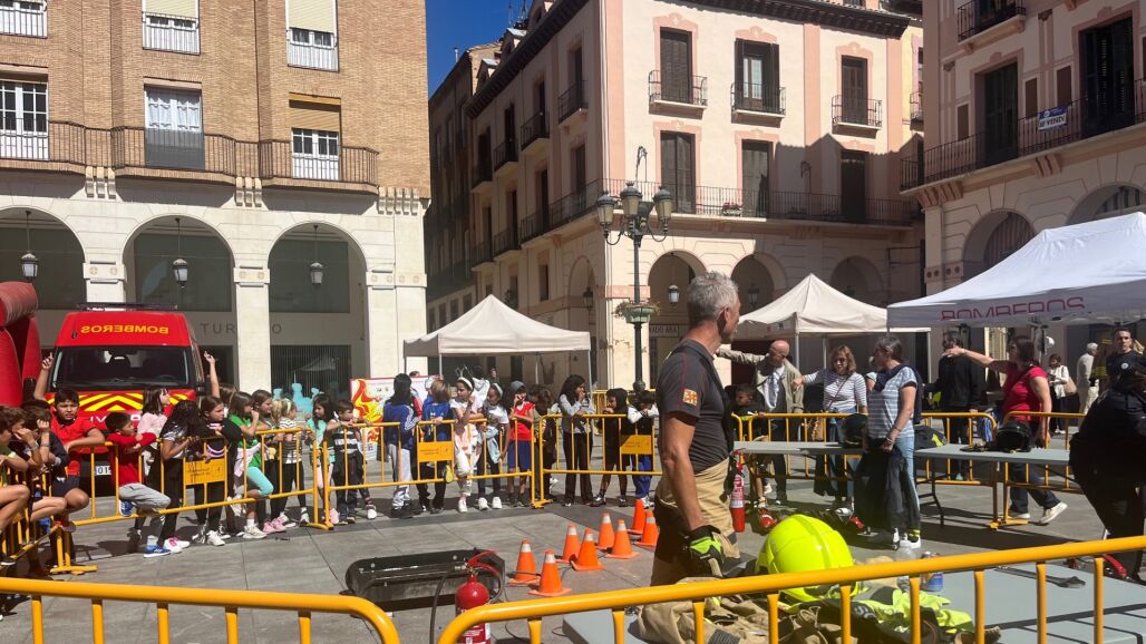 Más de 1.800 escolares de todos los colegios de Huesca participan estos días en las actividades de la XX Semana de la Prevención de Incendios que promueve la Fundación Mapfre junto al Servicio de Bomberos de Huesca y la Asociación Profesional de Técnicos de Bomberos. La plaza López Allué se ha transformado en un aula de formación donde se les enseña a los más pequeños cómo prevenir y actuar ante una emergencia. De este modo, aprenden desde cómo utilizar un extintor hasta cómo escapar de una vivienda llena de humo.