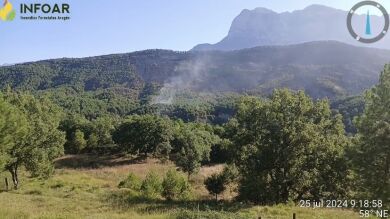 Este jueves de nuevo las temperaturas serán bastante altas con viento del sur que obligará a estar "muy atentos". Protección Civil mantiene el Puesto de Mando Avanzado (PMA) en Aínsa y en el operativo participan efectivos de todas las administraciones, el último en incorporarse esta mañana ha sido un hidroavión del Ministerio que, junto al resto de medios aéreos, se centran fundamentalmente en el flanco izquierdo, un área con dificultad de acceso debido a la orografía del terreno.