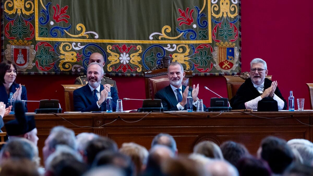 El rey Felipe VI ha inaugurado oficialmente el curso universitario 2024-2025, con la Universidad de Zaragoza como anfitriona. El solemne acto de apertura se ha celebrado en el Paraninfo, con la presencia de 39 rectores de toda España, las ministras Diana Morán y Pilar Alegría, autoridades aragonesas y 300 invitados. En su discurso, el monarca ha felicitado a la institución académica por sus 550 años de historia, plasmados en una exposición que el público podrá visitar desde mañana.