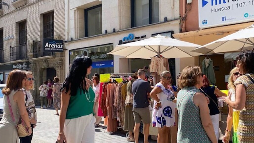 Las prendas en blanco o en verde son sin duda uno de los mayores reclamos de la jornada para los clientes que se acercan a los diferentes stands. Además, la jornada cuenta con charanga, música y otras actividades de animación para promover el consumo de los oscenses.