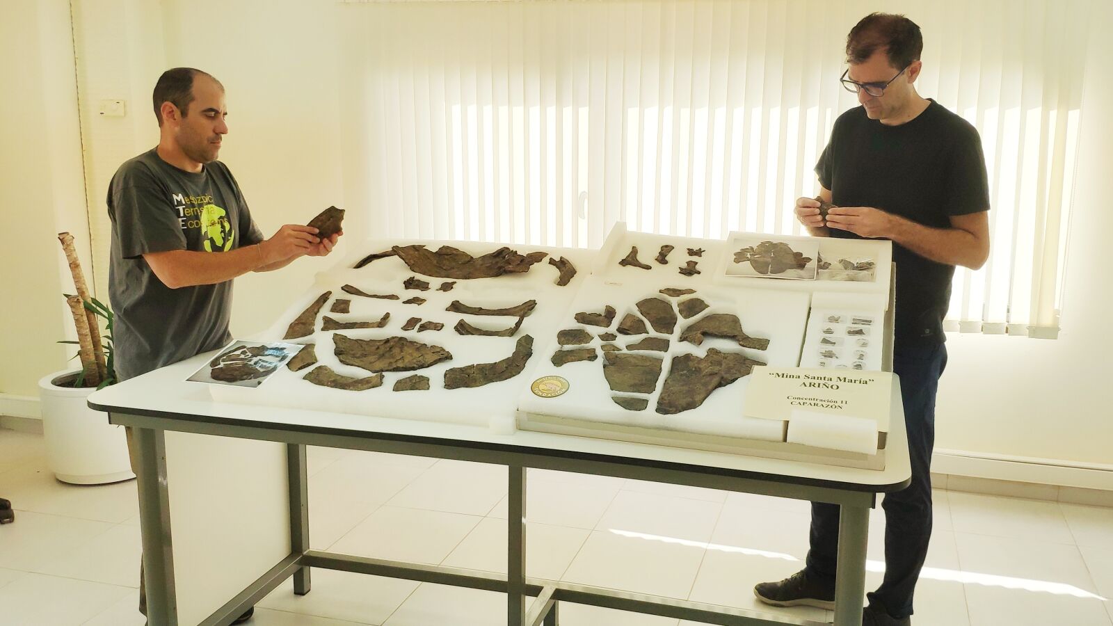 El esqueleto de una tortuga de 110 millones de años ha salido a la luz en el yacimiento de la Mina Santa María de Ariño. La importancia del hallazgo se debe a que se trata de los restos más completos de esta especie encontrados en Europa.