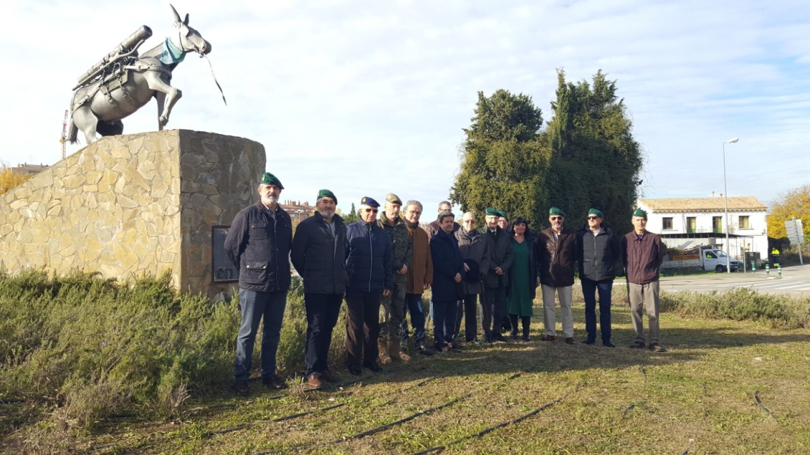 Este acto se ha celebrado ante el monumento a este équido híbrido en el paseo Lucas Mallada, junto al puente de San Miguel, al que han asistido el alcalde de la ciudad, Luis Felipe, así como los concejales Ana Loriente y Roberto Cacho, los presidentes de las dos hermandades de veteranos (el coronel en la reserva Miguel Juliá y el coronel retirado Jaime M. Marqueta), el presidente del Colegio de Veterinarios de Huesca, Fernando Carrera, y el coronel subdelegado de Defensa, Rafael Matilla. Se ha procedido a una ofrenda floral por parte del alcalde y por el coronel retirado Félix Generelo, como miembro más antiguo de la Asociación, depositando un ramo a los pies de la figura del mulo.