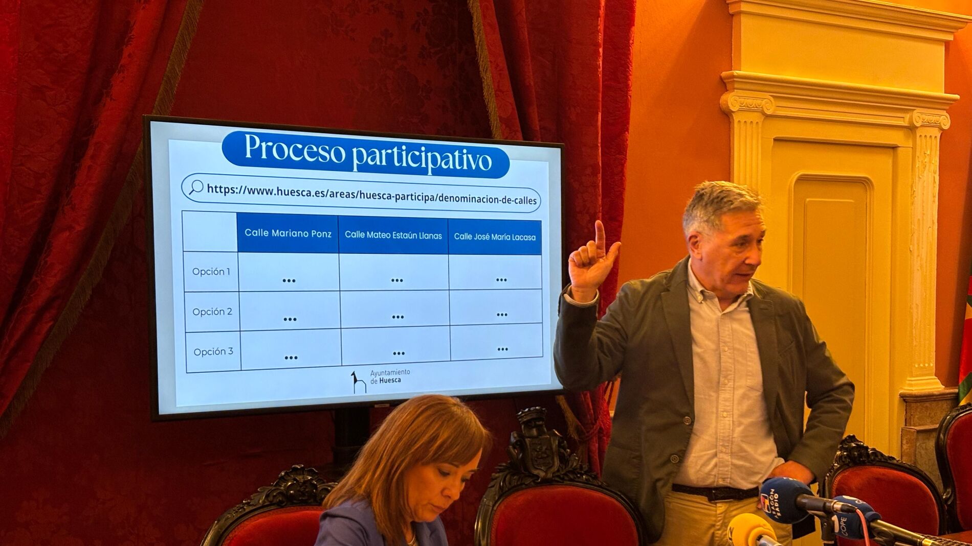 Comienza en Huesca el proceso participativo para elegir la nueva designación de las calles dedicadas a los alcaldes franquistas José María Lacasa, Mariano Ponz y Mateo Estaún Llanas. Tres nombres que deberán ser sustituidos en cumplimiento del auto del Tribunal Superior de Justicia de Aragón, que rechazó el recurso contra la sentencia presentado por el Ayuntamiento de Huesca y que lo condenaba a retirar del callejero a los tres alcaldes franquistas en base a la aplicación de la Ley de Memoria Democrática.