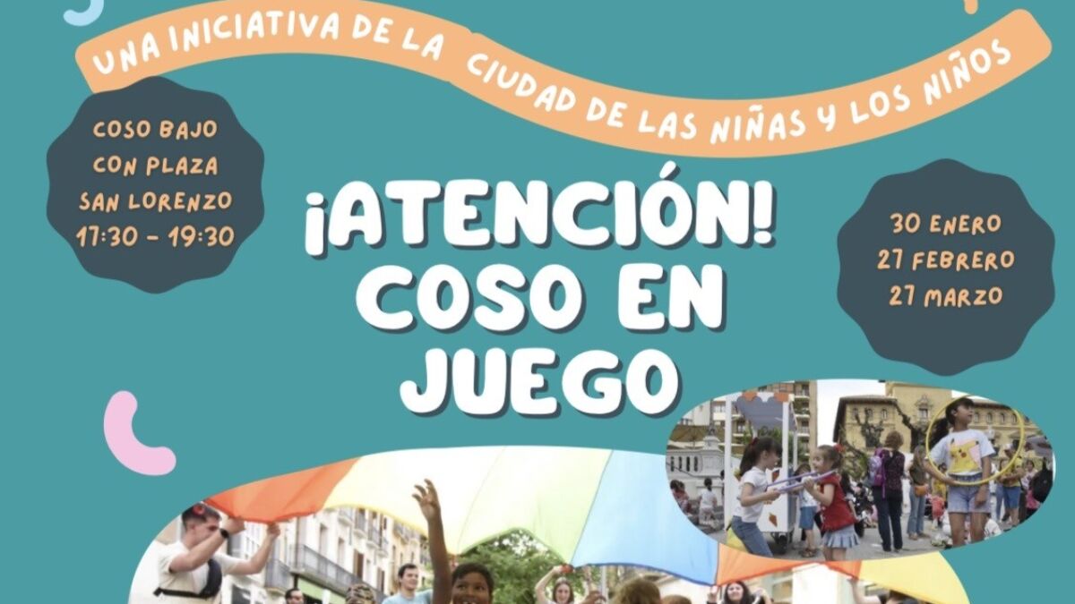 El Ayuntamiento de Huesca pone en marcha el proyecto “Coso en Juego”, una iniciativa impulsada desde el Consejo de la Ciudad de las Niñas y los Niños para recuperar el espacio público como lugar de juego, autonomía y encuentro, entendiendo la ciudad como un entorno educativo, seguro y compartido. Así la primera edición tendrá lugar el próximo viernes 30 de enero, de 17'30 a 19'30 horas, tiempo en el que se cortará un tramo del Coso Bajo junto a la plaza San Lorenzo para transformarlo en un espacio de juego libre y no dirigido, en el que niños y niñas podrán jugar, explorar y relacionarse con libertad.