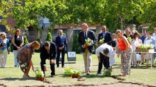 El presidente y los consejeros del Gobierno aragonés, junto a los funcionarios autonómicos y las asociaciones de víctimas del terrorismo han celebrado este miércoles un homenaje, coincidiendo con el 25º aniversario del asesinato de Miguel Ángel Blanco a manos de ETA. Los jardines del Edificio Pignatelli han sido el escenario de una ofrenda de flores, con las que se ha formado una enorme mano blanca.
