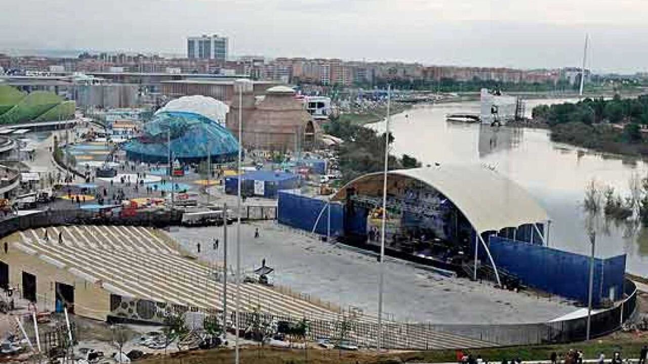 No son habituales las crecidas del Ebro en pleno mes de junio, pero si el agua era el tema central sobre el que iba a girar la muestra, sin duda iba a ser la gran protagonista de la inauguración. El que fuera director de operaciones y contenidos, Jerónimo Blasco, recuerda que a tres días de la inauguración hubo que activar un plan B, sustituyendo la parte de la ceremonia que transcurría en las inmediaciones del cauce del Ebro.
