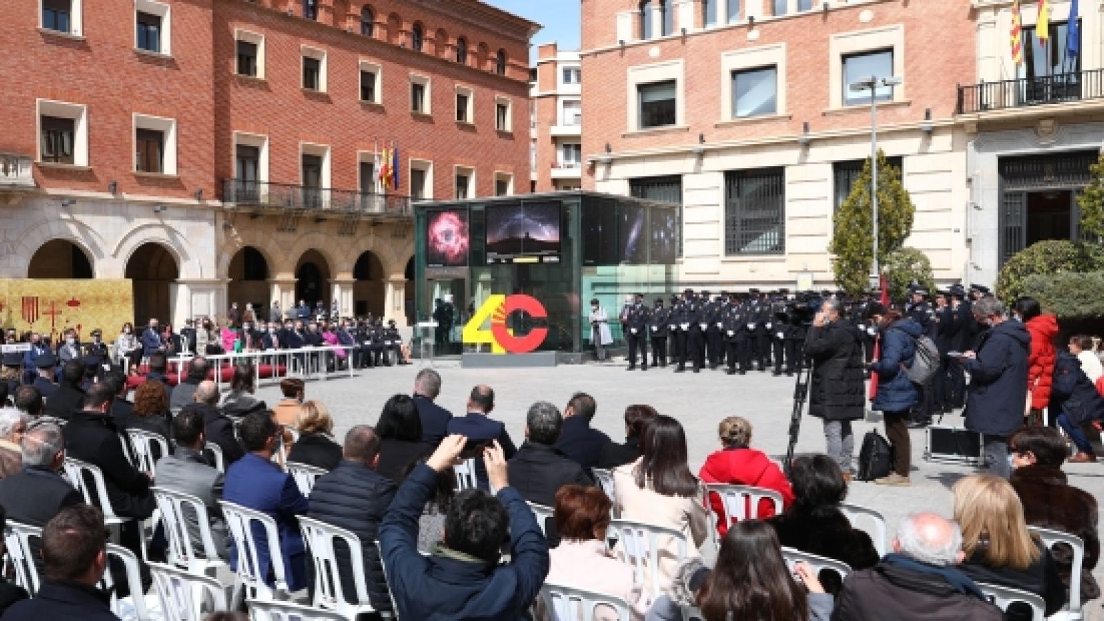 El acto se ha desarrollado en la Plaza de San Juan de la capital, donde el presidente aragonés, Javier Lambán, se ha referido al derecho contemplado dentro del Estatuto de Aragón de contar con una policía autonómica propia, una figura que "es innecesaria, puesto que con los 117 agentes que actualmente conforman la Policía Adscrita, 17 de ellos en Teruel, es suficiente".
