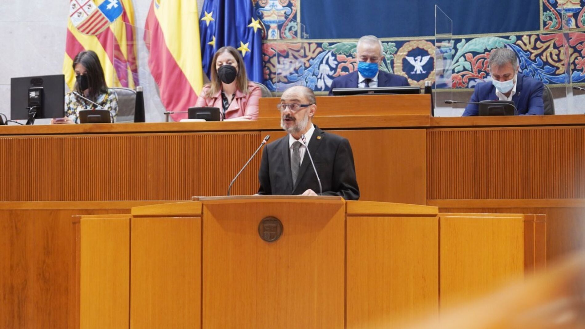 Lambán también ha hecho balance de la labor del Ejecutivo durante la pandemia del coronavirus. Ha explicado que la gestión de su Gobierno ha sido transversal y ha realizado un balance satisfactorio, aunque ha pedido perdón por los errores que han podido cometer y ha recordado a los 3.864 aragoneses víctimas del COVID. El presidente aragonés ha destacado que el autogobierno y la ley de Sanidad propia han sido claves para contener la pandemia. Al margen, Lambán ha señalado que en estos meses han seguido impulsando el proyecto de Aragón social, verde y digital con las apuesta claras por la logística, la agroalimentación, la automoción, la industria farmacéutica o las renovables.