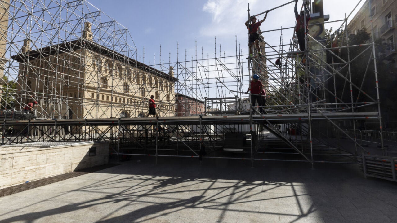 La actividad es frenética en los puntos neurálgicos de las próximas Fiestas del Pilar. A falta de cuatro días para el pregón que dará inicio a las fiestas tres años después, más de 500 personas están trabajando en el montaje de los escenarios que acogerán las actuaciones programadas por el Ayuntamiento de Zaragoza, según ha explicado el técnico de Zaragoza Cultural, Javier Ramírez, quien también ha recordado que el día 10 comenzará el montaje de la estructura para la Ofrenda de Flores.
