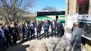 Varias autoridades, con Javier Lambán y Alain Rousset, presidentes de Aragón y la región francesa de Nueva Aquitania, respectivamente, han visitado hoy miércoles las estaciones de Ayerbe y Canfranc para conocer de primera mano cómo avanzan los trabajos.