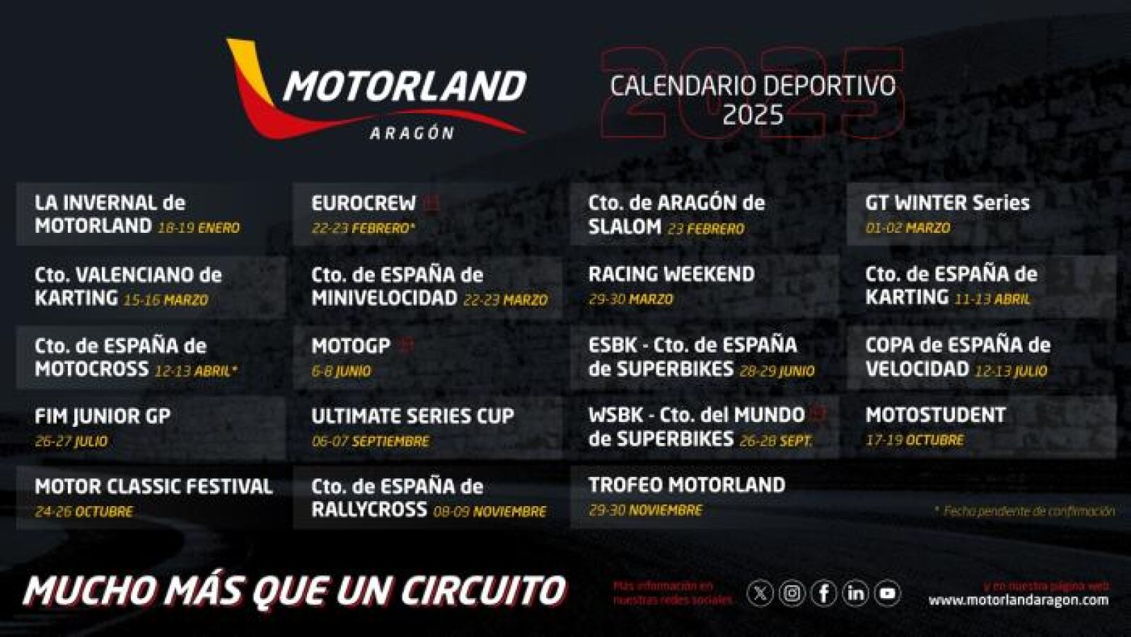 Por su parte, el director gerente del circuito, Jorge Panadés, ha confirmado que "va a ser un calendario muy completo".