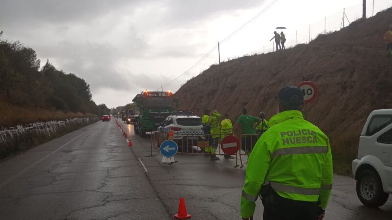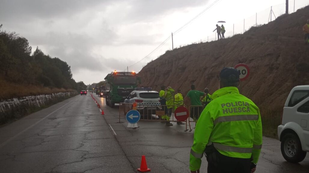 Ha llovido de forma intensa y durante varias horas en la capital oscense, lo que ha provocado un desprendimiento de tierra en la carretera de Barbastro, en la prolongación del paseo de Ramón y Cajal. Ha caído una piedra y además se han detectado algunas grietas en el talud. Sobre el terreno trabaja una máquina y se está a la espera de otra, de brazo de mayor longitud, pero hasta que cesen las lluvias y seque el terreno, esa máquina no podrá actuar en la zona. Por tanto y como mínimo, hasta el próximo martes no se acometerán los trabajos y el sentido de salida de Huesca seguirá cerrado, con desvío provisional por la calle División 52. Para los que entran a la ciudad hay un carril habilitado.