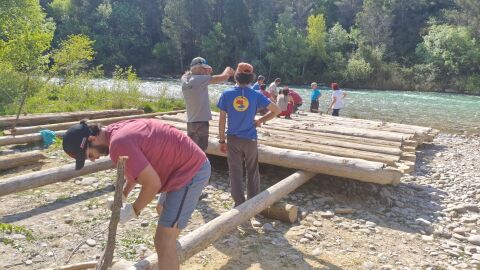 La Asociación de Nabateros de la Galliguera ultima la construcción de las dos nabatas que este domingo, 26 de abril, surcarán las aguas del río Gállego, en el XXII descenso. Una edición muy especial, ya que estrena el reconocimiento como actividad de Interés Turístico de Aragón, lo que pone en valor todavía más el antiguo oficio de trasporte fluvial de madera desde los bosques del Pirineo al Ebro.